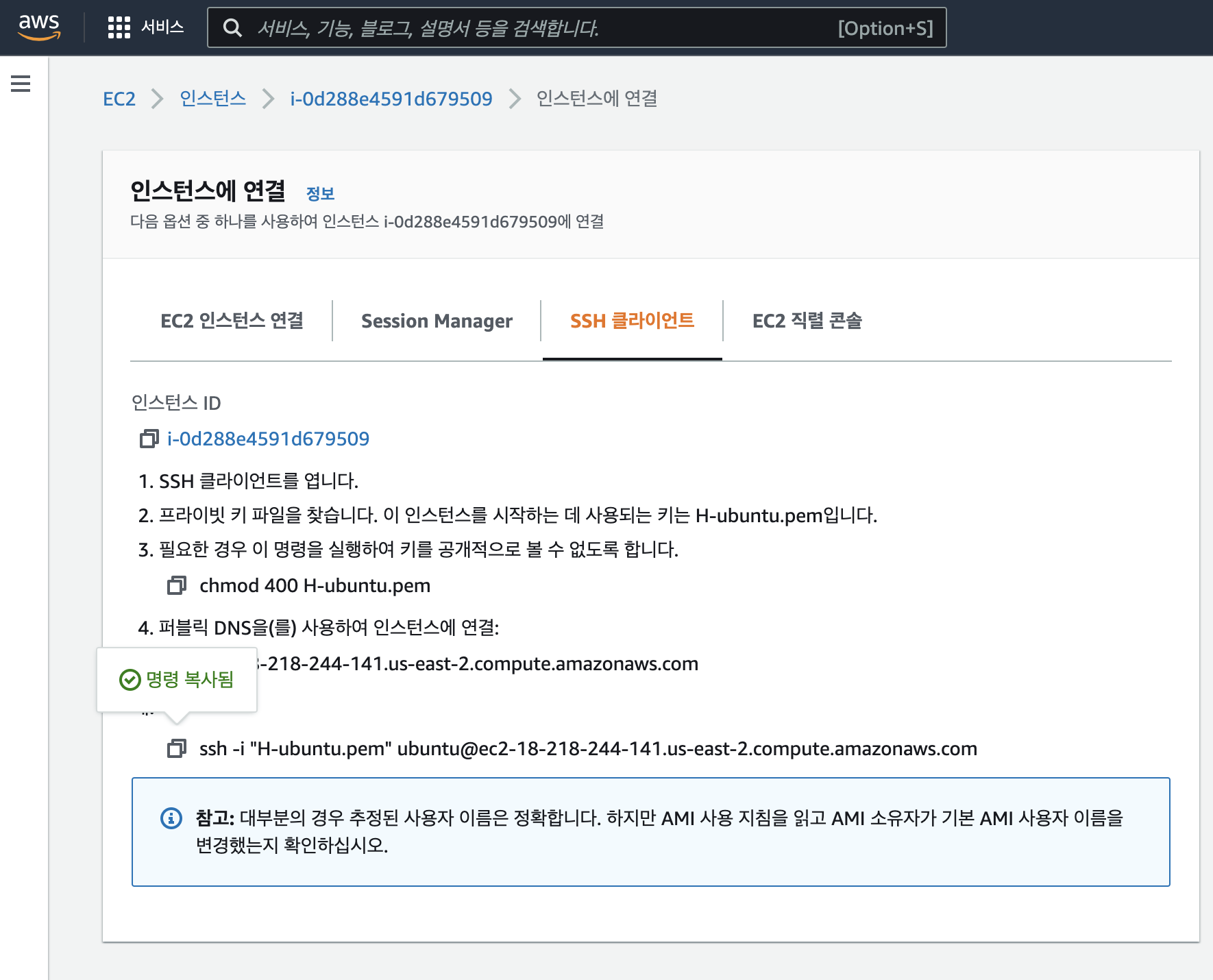 $ chmod 400 ~/.ssh/H-ubuntu.pem