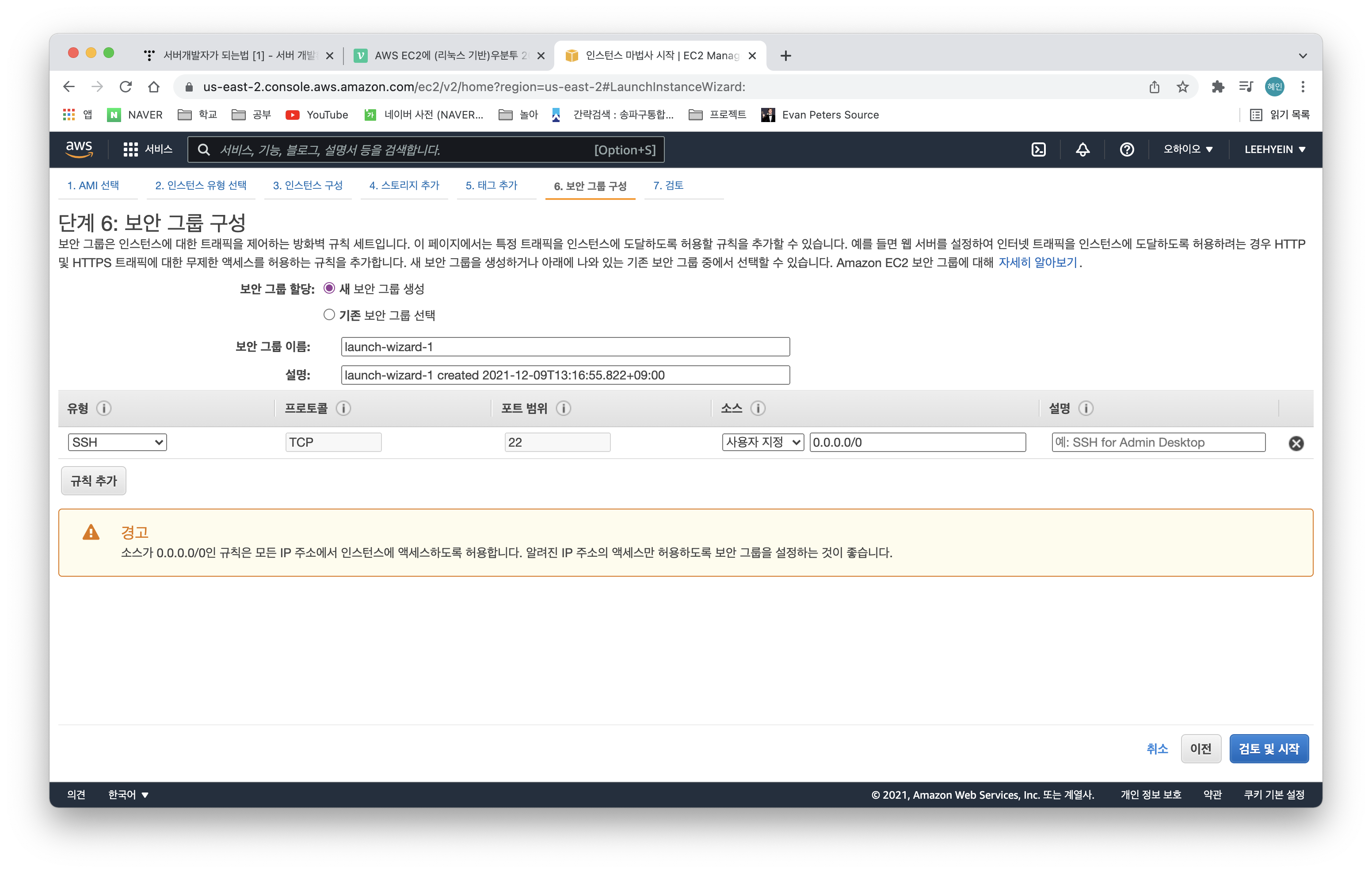 AWS EC2에 (리눅스 기반)우분투 20.04LTS 인스턴스 생성하기